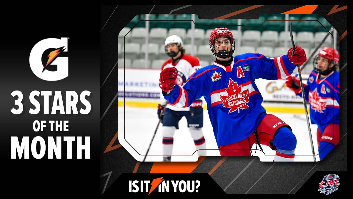 TORONTO – The Canadian Junior Hockey League (CJHL) announced Friday that the forward trio of Gabriel Le Houillier, Rockland Nationals (CCHL); Owen King, Greater Sudbury Cubs (NOJHL) and Josh Knittig, Battlefords North Stars (SJHL) have been named its 3 Stars of the Month – Fuelled by Gatorade, for January.